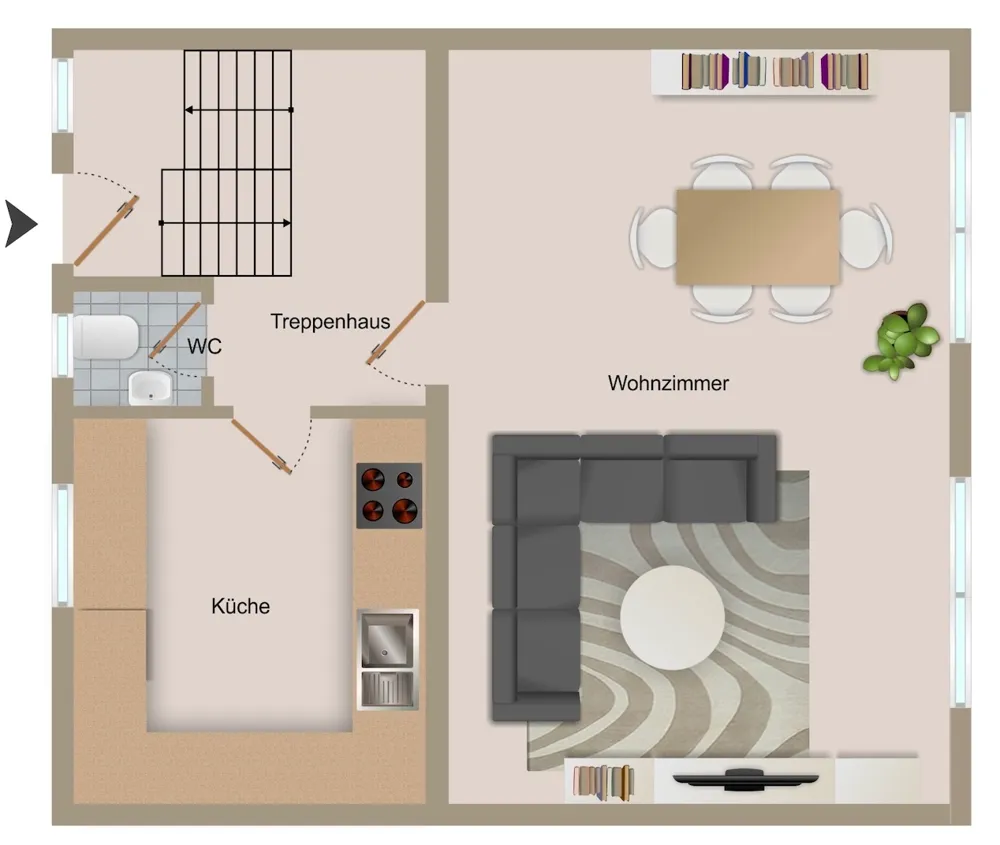 - Zusätzliche WCs: 2 Gäste-WCs mit Fenster (EG & OG)