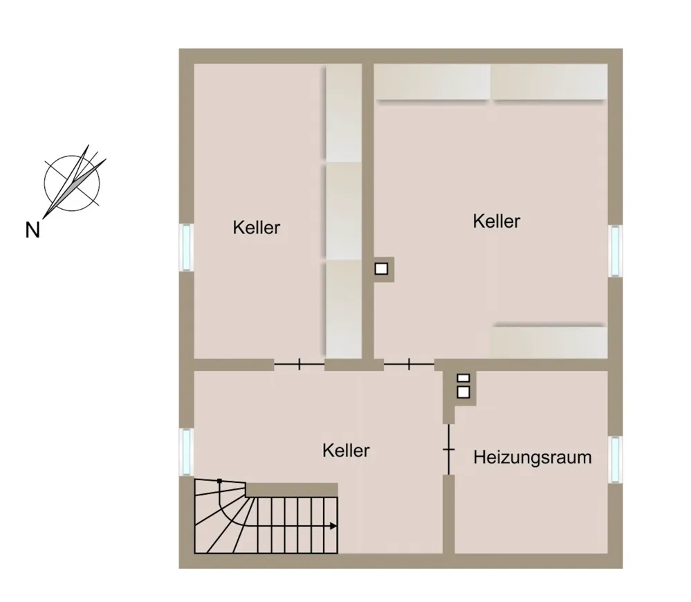 Weiterhin ist das Haus mit drei Räumen voll unterkellert und besitzt etwas zurückgesetzt eine Garage mit einigen Abstellmöglichkeiten.